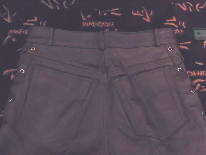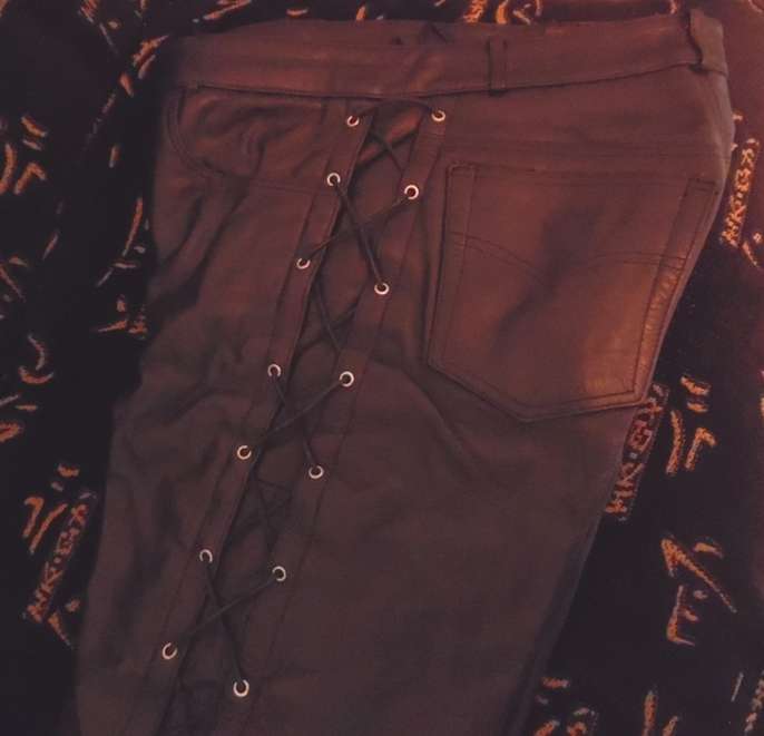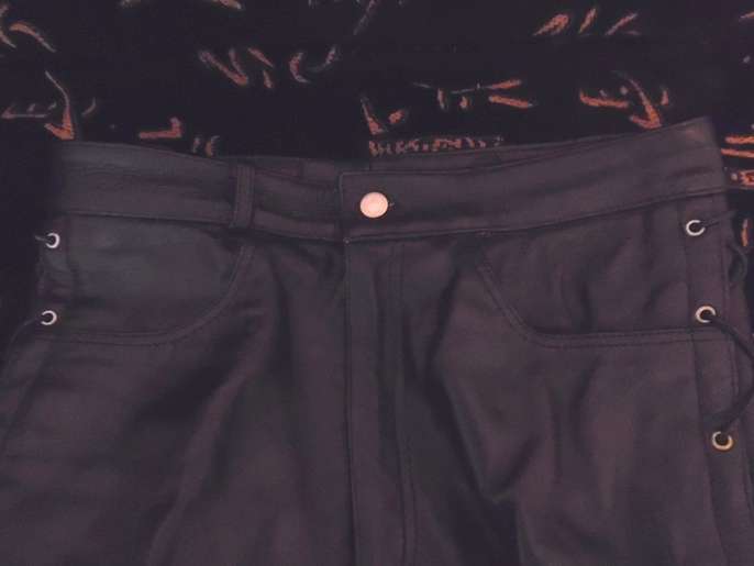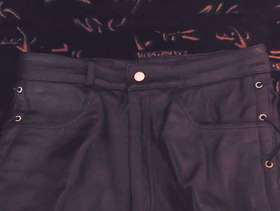 Real Cowhide Leather Black Lace Up Biker / Motorcycle Trousers W32" L32"
