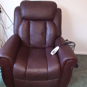 Practically new. CareCo Lynton recliner riser chair. Brown leather. Includes massage and heat options. Suits the slightly larger frame. Buyer collects from Milton Keynes area.