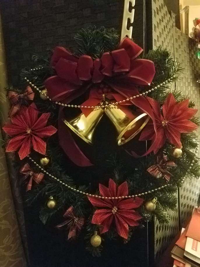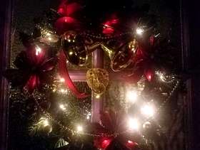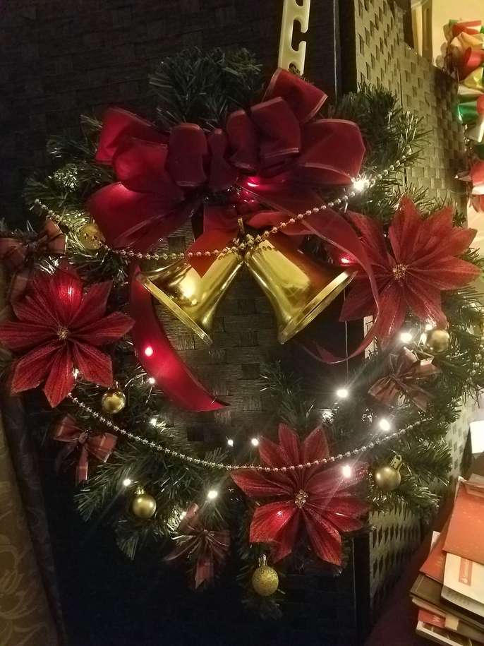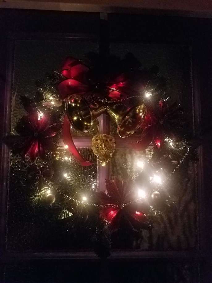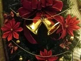 Lovely Hand Made Fir Wreath for indoor or outdoor use. Made with Red flowers, tartan bows, gold bells, baubles and beads. Plus a large red velvet bow. Complete with battery operated LED timer lights, 6 hour on/18 hours off and 8 light modes to choose from. Lights last up to 25 days on 1 set of batteries. Batteries not included. £25. Collection only.