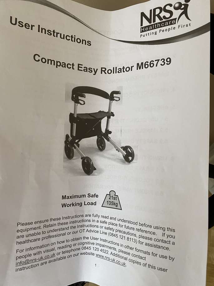 Brand new, unused Rollator M66739 walking aid, similar to that used by Captain Sir Tom Moore! RRP £149.99