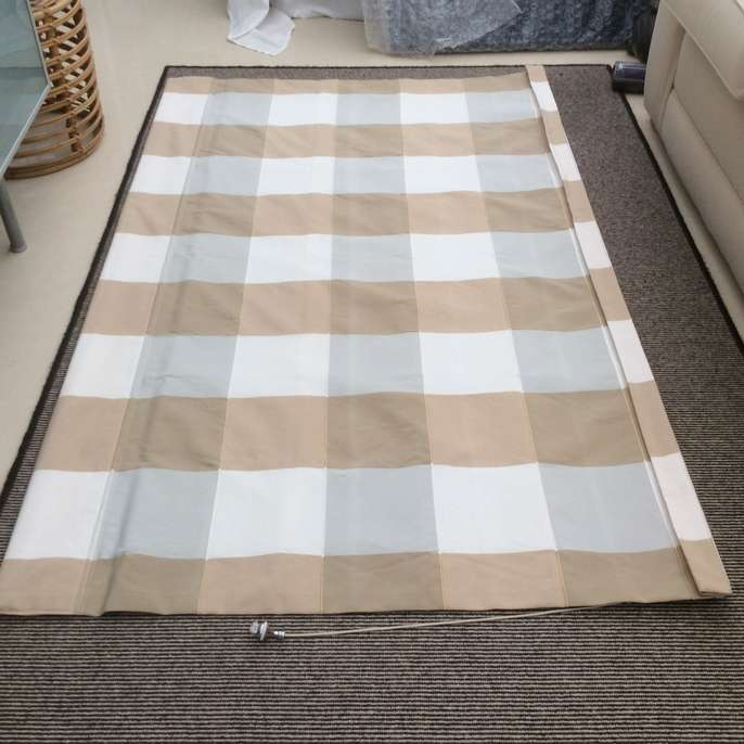 For sale is this high quality bespoke Roman blind. Selling as have moved home and doesn’t fit any windows. I had this made to order paying circa £150. It is fully lined and is an attractive large check pattern in pale grey, beige, and off white. It measures 6’ across and the drop is 3’ 6”. Selling without fittings but as the blind is on a wooden batten it should not be too difficult to attach to a wall. Pick up only from Tollesbury please.