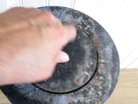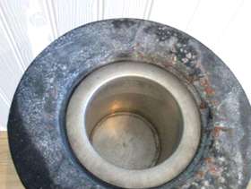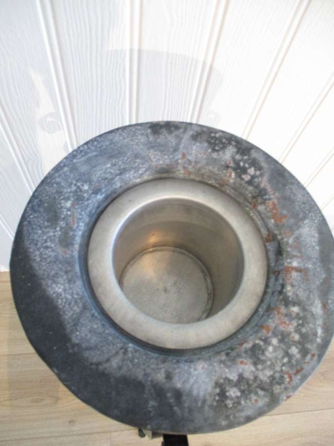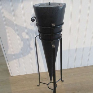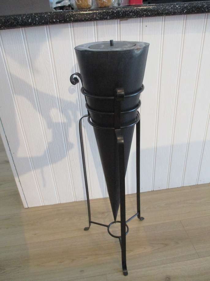 Rustic plant pot/candle holder 33 inches high will hold a candle or pot measuring 3.5 inches.