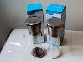 Salt & pepper grinders (a pair), tall, by Ashley Housewares in original boxes, almost new