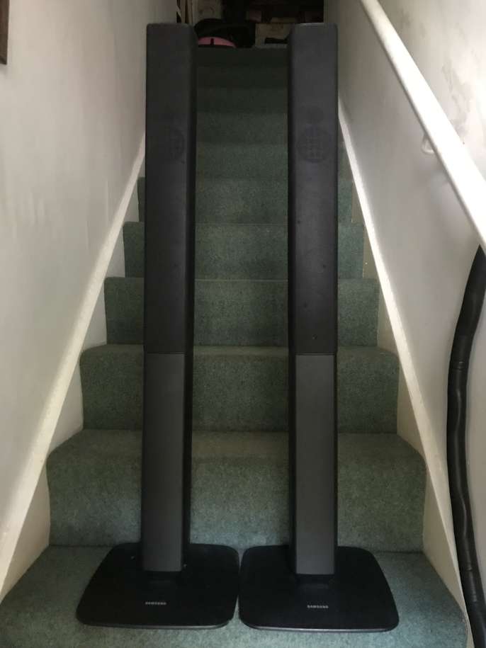 Samsung Speakers This item is in Warminster GB All the details Speakers for sale 40” tall by 3.5 wide need leads not wireless Price £10 for pair Time Remaining This listing has finished Category Electronics Post Message