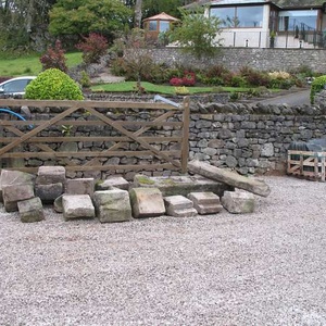 This traditional featured Sandstone lintle is very heavy it came out of Warton Dance hall when it was demolished in 2003, it comes with matching coin stones
