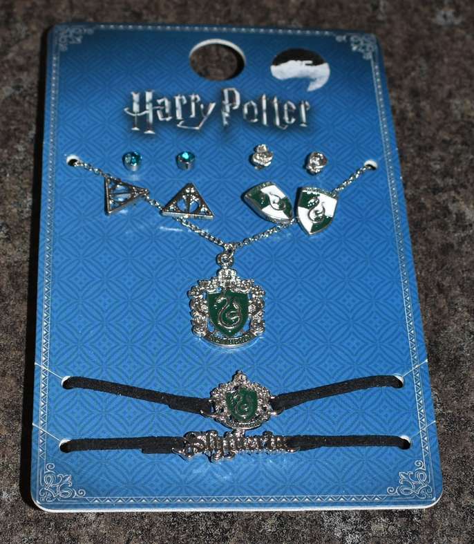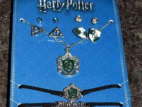 As per title. A nice selection of Harry Potter Slytherin Memorabilia, collection contains :- Slytherin Keyring Slytherin Jewellery Set Slytherin Quill Pen