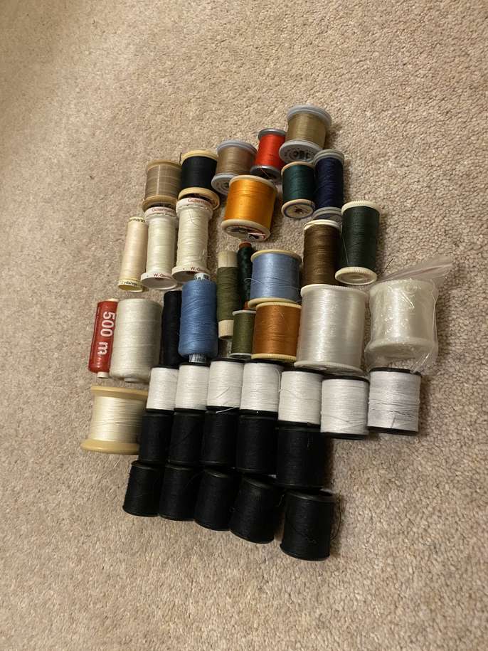 SEWING THREADS, ASSORTED COLOURS 42 REELS INCLUDING SYLKO, DRIMA, GUTTERMANN, MOLNLYCK, will sell separately