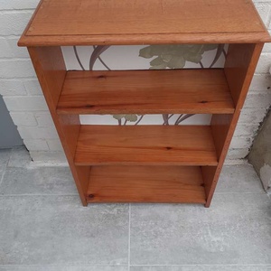 A pine bookshelf measuring 22 inches by 32 inches. Social distancing no problem