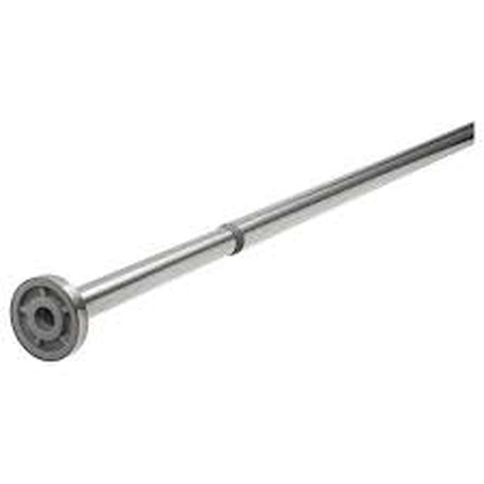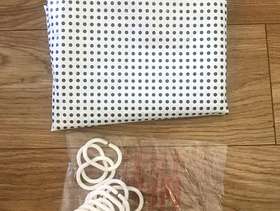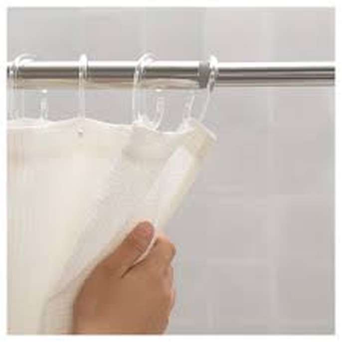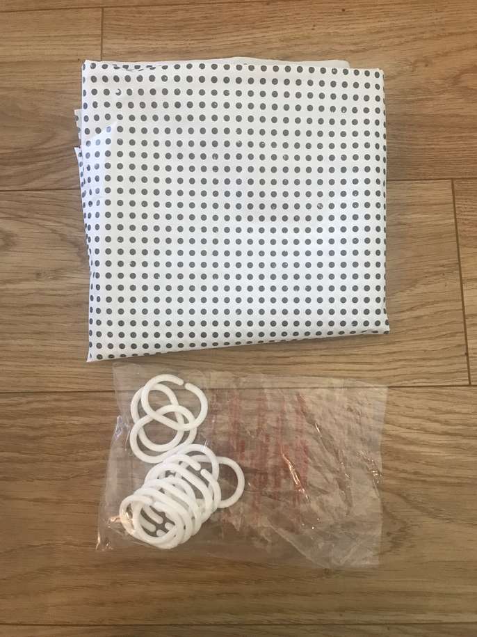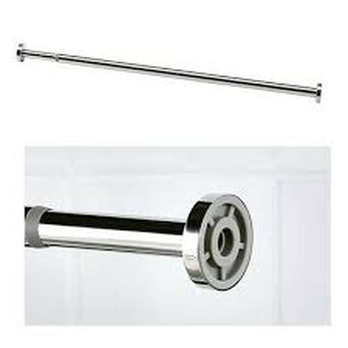 Ikea Hornen shower curtain rail, telescopic, no drilling required, stainless steel, minimum length 120cm and maximum 200cm, unused. Free plastic grey and white spot shower curtain with white rings.