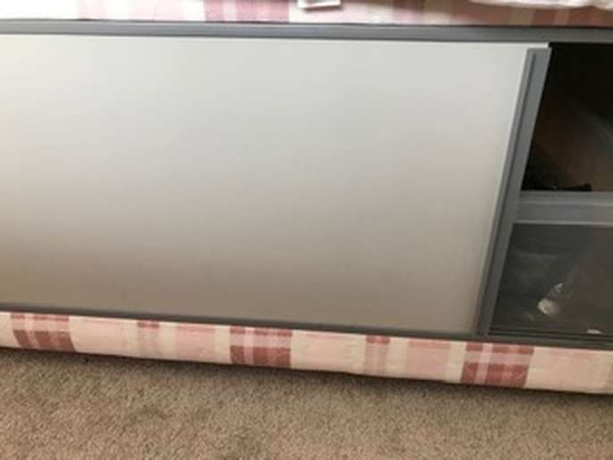 Single bed and mattress, storage section. In visitors bedroom as new. Only selling as moving home.