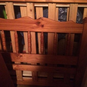 Single bed frame (in antique pine look finish) with slatted base. It is dismantled, so easy to transport.