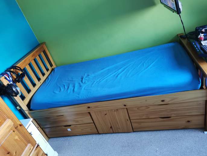 Basically like new. The mattress from Dreams has always had a waterproof protector on it.