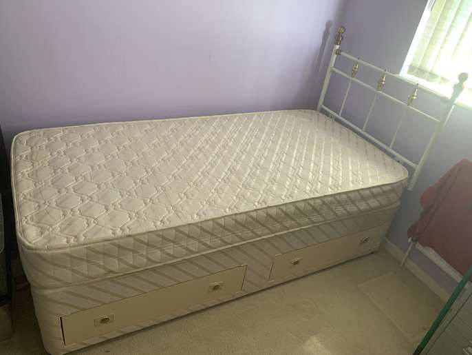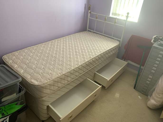 Single bed for sale in good condition. If required comes with Mattress protector, two duvets, fitted sheet and balance. Can put in garden to keep to social distancing rules. Buyer must be able to collect.