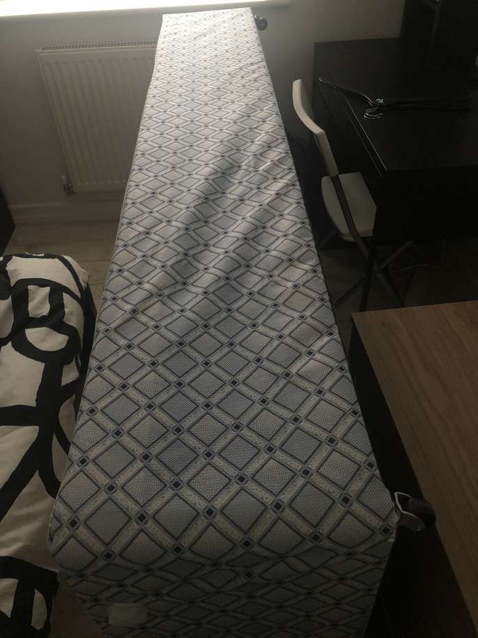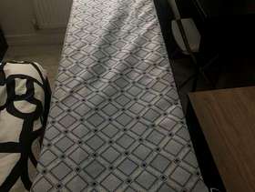 Standard single bed base. Blue with beige top. Only used while we waited for the other base to be delivered. It has been used about 3 times. No mattress just the base.