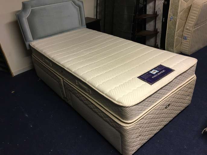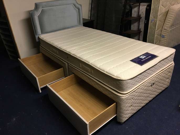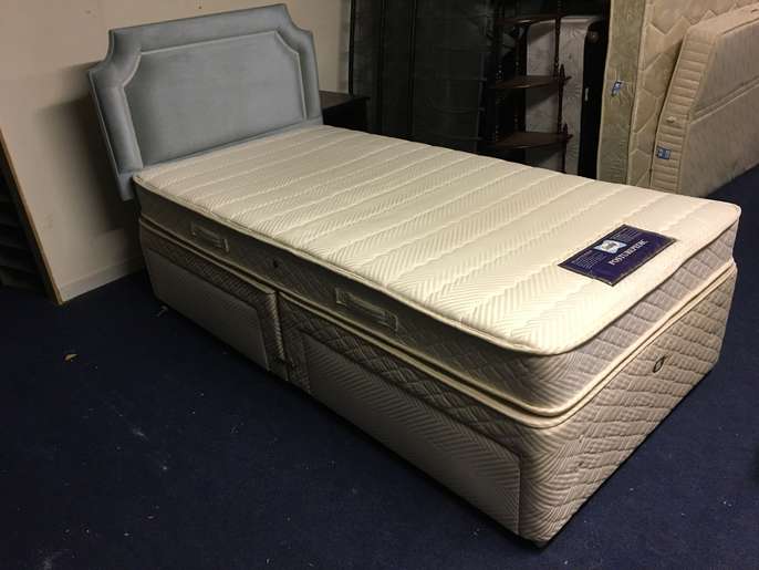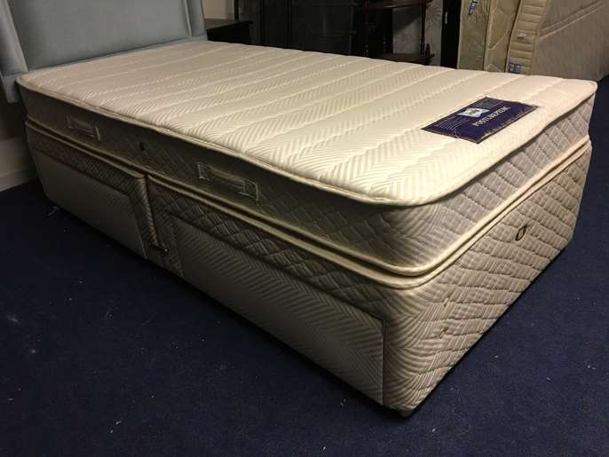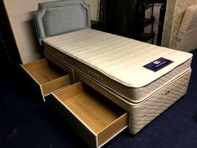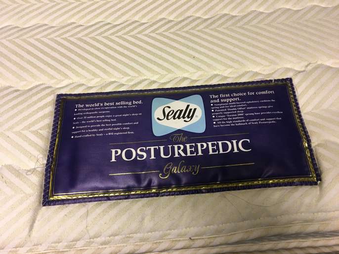 This is a good quality Sealy posturepedic sprung mattress bed with 2 large storage drawers it comes with the headboard included the mattress is good and clean no stains from a pet free/smoke free home I can deliver to the local Halifax/Bradford area for a £10 delivery charge