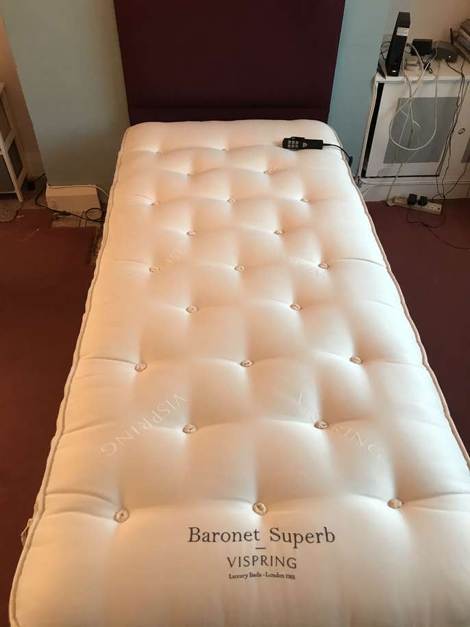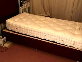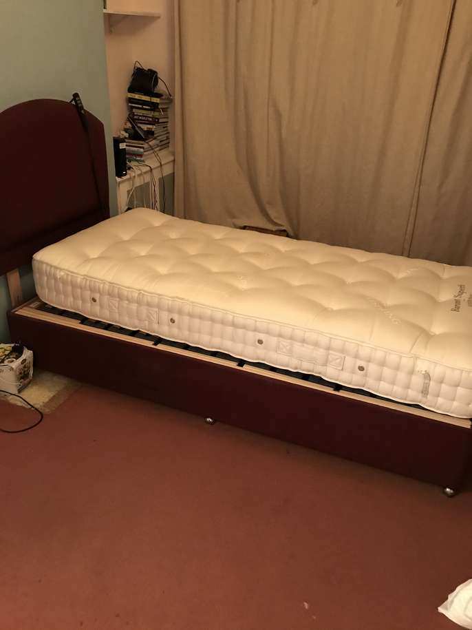Single electric bed with VSpring mattress. 2 years old. Clean and in good working order. Can include bed linen and a bed bumper. Collection only.