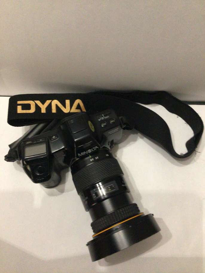 Konica Minolta Dynax 7000i SLR Camera with Tokina AT-X. AF 28-70 Lens 72mm dia 1:2.8 Camera strap, batteries and Fuji films. And a Minolta 5000i Flash