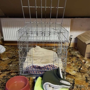I've a small dog cage suitable up to the size of a king Charles cavalier. It also comes with bed, water bowl, a fleece coat & shower proof fluorescent coat. Everything for your dog