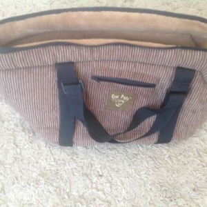 Brown small dog carrier in good condition. Has sturdy straps, zip and clip attachment . Machine washable.