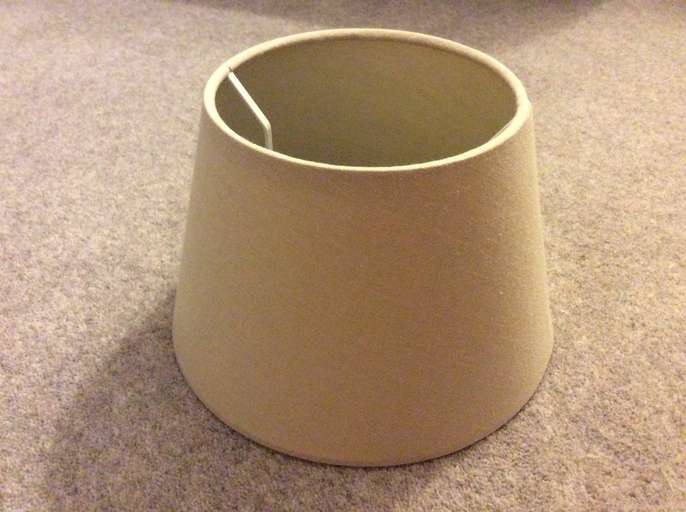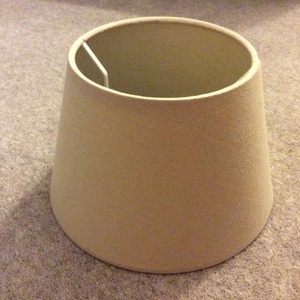 Small very pale green cotton lamp shade. 13cm diameter at top 20cm diameter at bottom 13cm tall. No marks or damage.