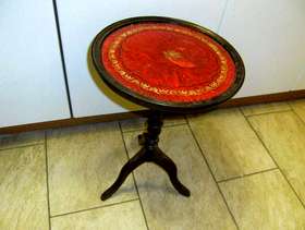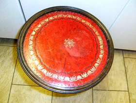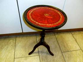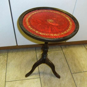 Small occasional table/lamp table 21 inch high, 13.5 inch dia , 3 legs, red leather inlay