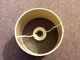 Small white lamp shade. 15.5cm top diameter 19.5cm bottom diameter 15cm tall White, slight silk texture.