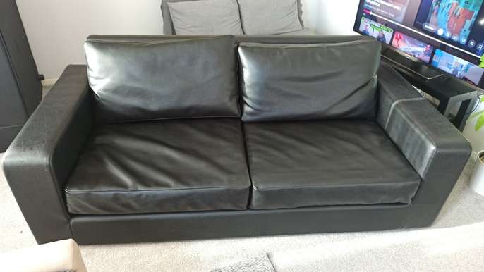 Selling my two identical 3-seater sofas made from faux leather. Excellent condition! Any issues. The size is shown in the photo. I’m selling them because I bought one large sofa and no longer need these two. Haven't space for it. If you buy only one, the price is £80 for each If you buy two, the price is £150 for both Open for offer Pets and smoking free house Cash only please