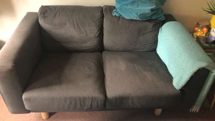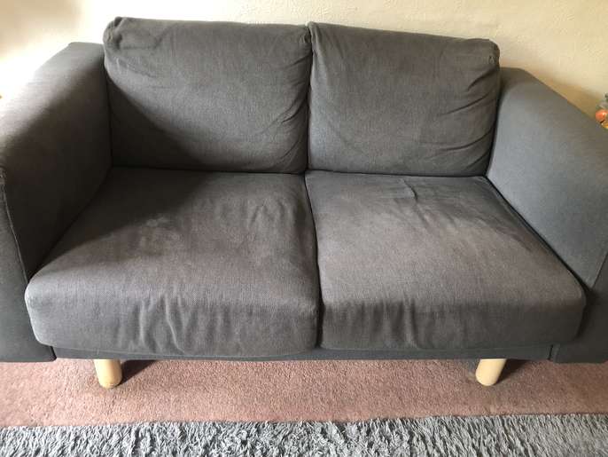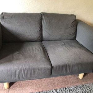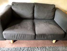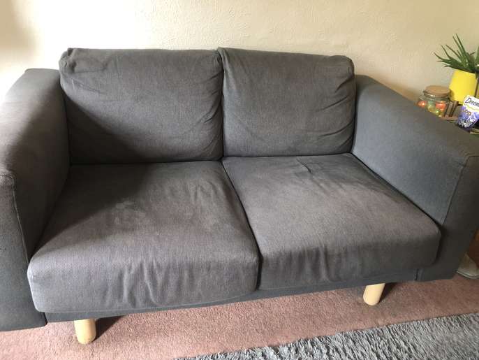 Grey/Blue two seat ikea sofa. Very comfortable, only very minor wear. Two years old. Washable seat covers. H 73cm x D 90cm x W 150cm Collection only