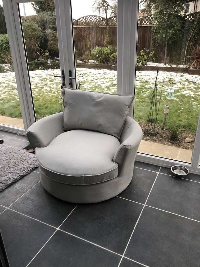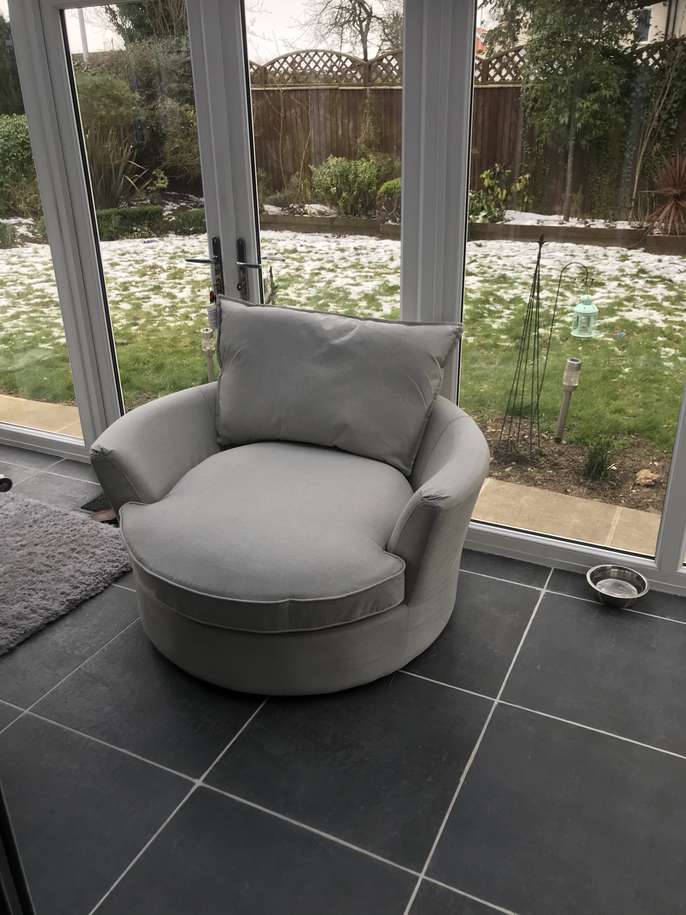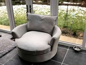 4 seater sofa couch very well maintenance Had some stress at the zipper side .professional cleaning done a month ago Barley used swivel chair big size