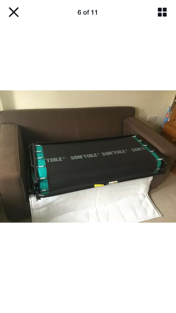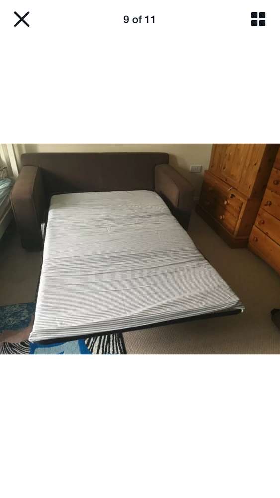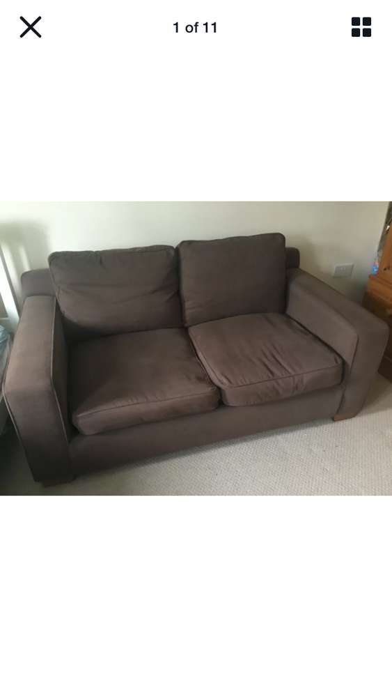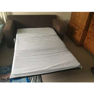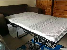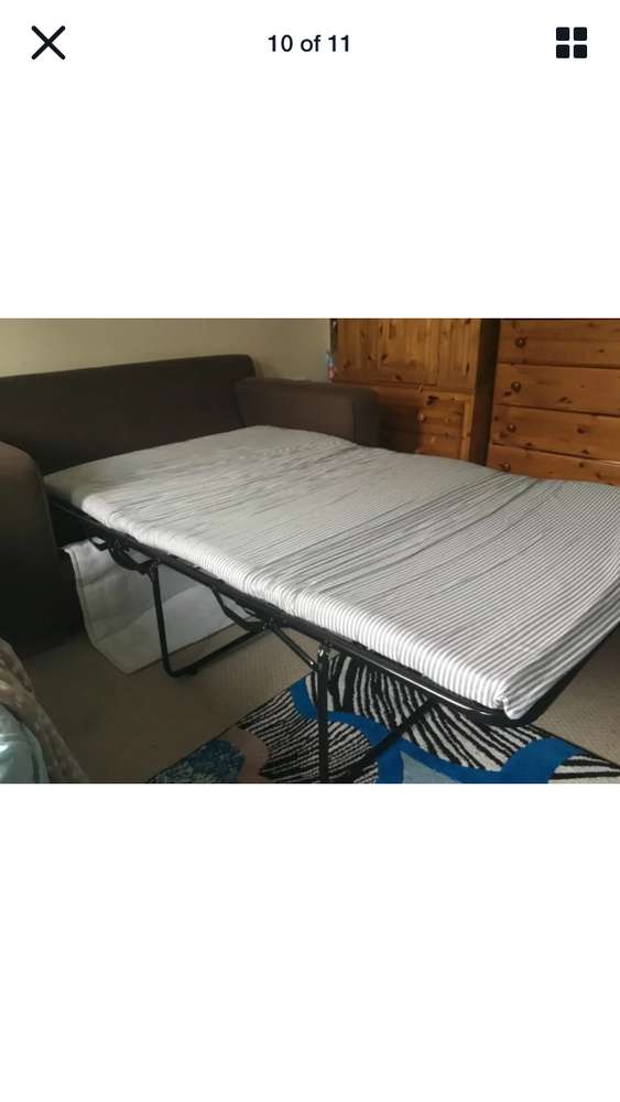 MUST BE COLLECTED By THURSDAY 06/08/20. Comfortable and stylish fabric two seater Sofa bed, neutral Mocha colour. This folds out with a robust accordion style metal black frame , comfortable sleeping mattress. Very occasionally use and Comfortable. Smoke free and dog free home. Sofasofa website shows the popular two seater sofa bed from their Denver collection , features a contemporary design combined with classic fabric and sturdy hardwood feet RT £600 plus. Denver 2 Seater Sofa bed Sleeps two adults comfortably. Details: Two back and two seat cushions included, washable covers. Moulded foam seat cushions Hollow-fill fibre back cushions Fully upholstered in twill fabric Wooden hardwood feet