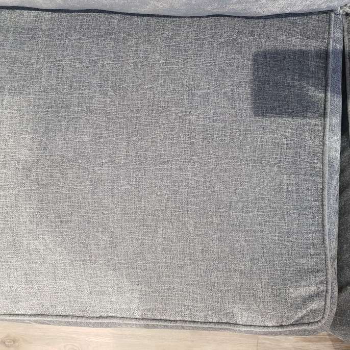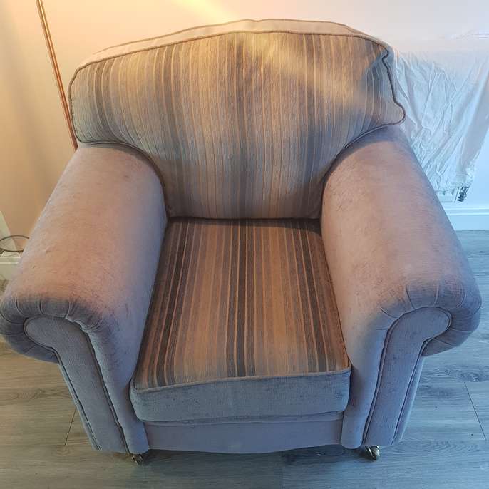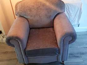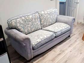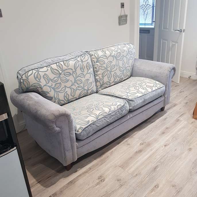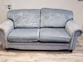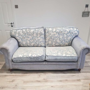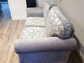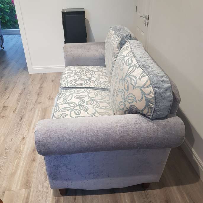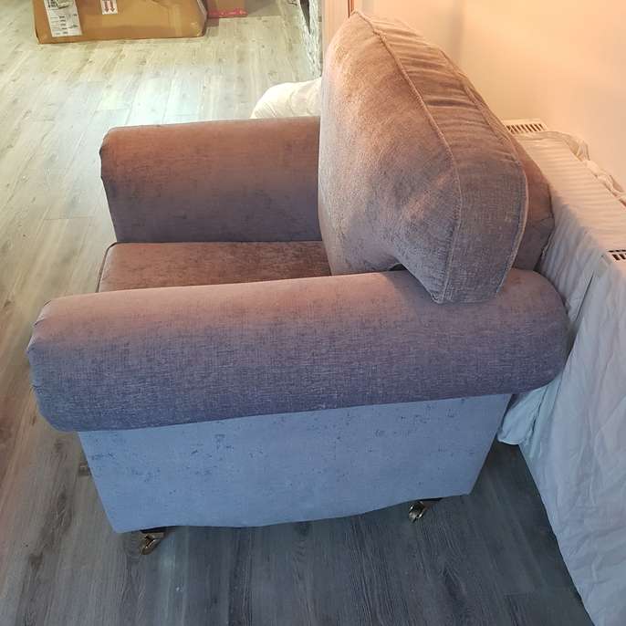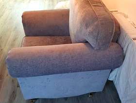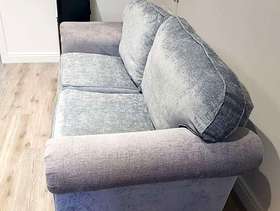 Lovely silver grey sofa set reversible cushions 2 seater length 180cm width 90cm Chair length 90cm width 90cm Very good condition collection only from Blackpool heron reach