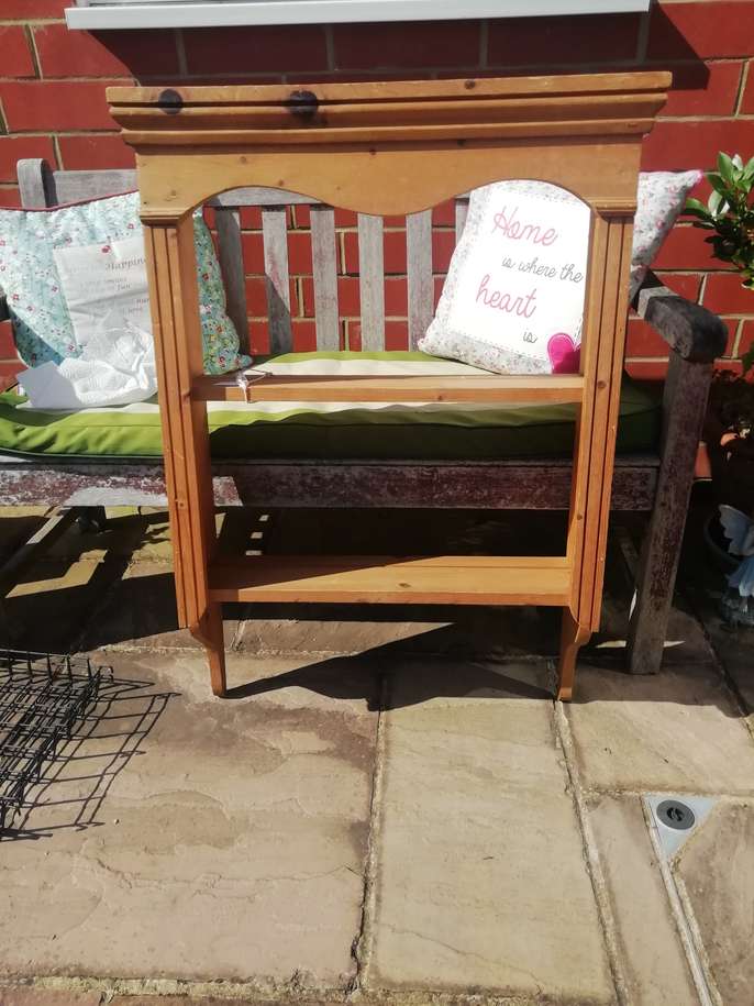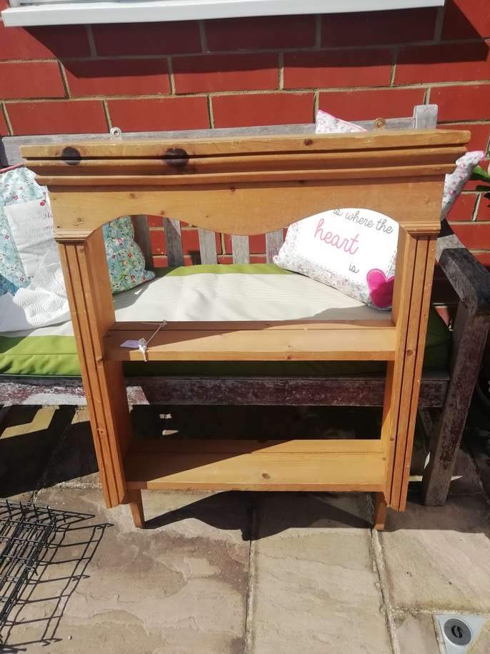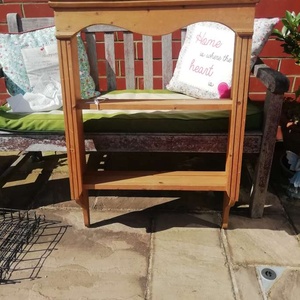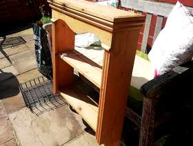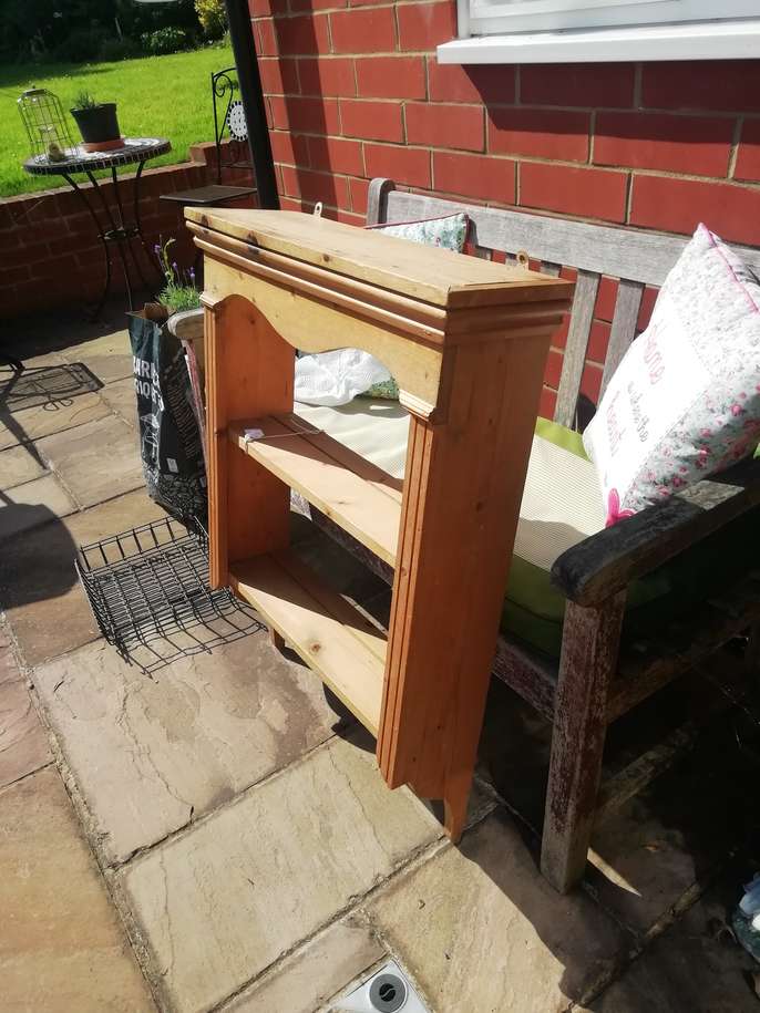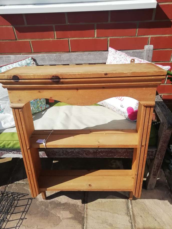 Very solid sturdy pine shelving with fixings for wall. Display shelving. Vintage. Collect from Horsham. Very sturdy, quality vintage item Width 24.5 inches or 62 cms Height 36 inches or 90 cms Depth 7 inches or 18 cms
