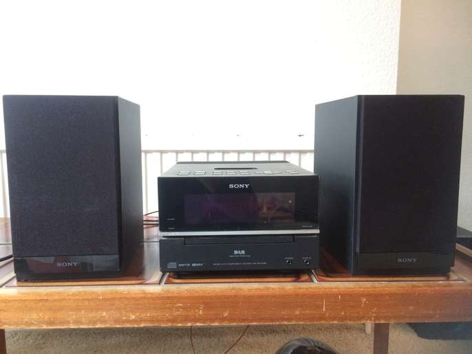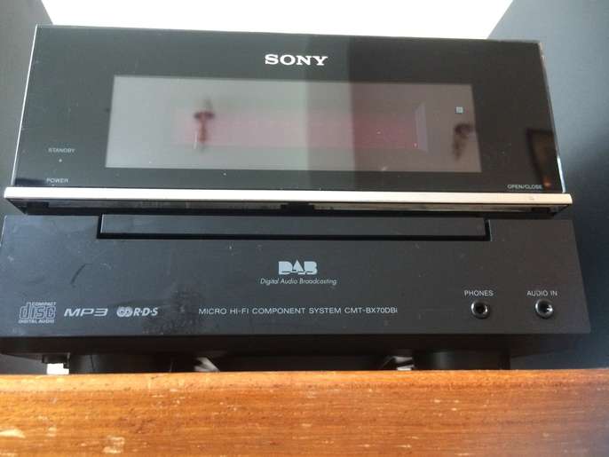 Sony Micro Hi Fi CMT BX70DBi System works very well but needs a new antenna lead (around £10 on ebay) after the vacuum cleaner swallowed the one it came with. Items included are the main unit and speakers. Good condition. Can be used manually, a remote can be purchased from Amazon for £10-11. Collection only, St Albans.
