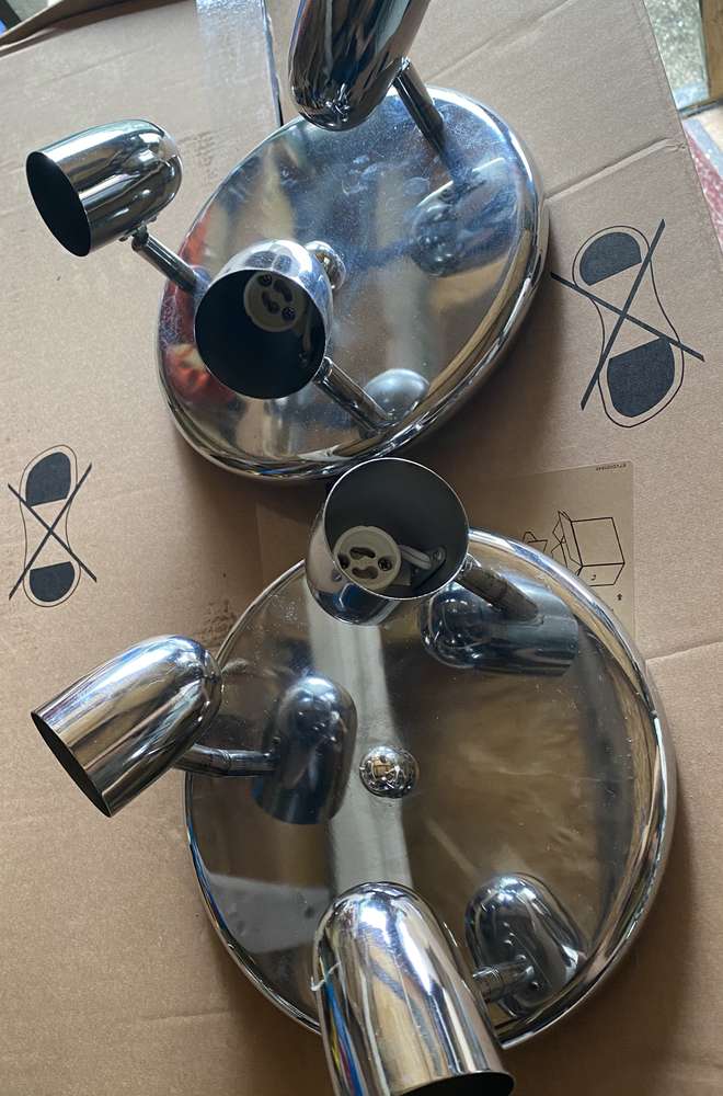 Set of two approx 25 cm across holding three GU10 bulbs ( not included) clean from non smoking home.