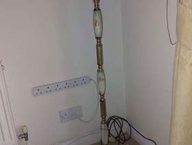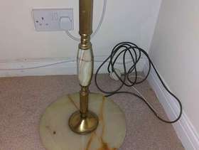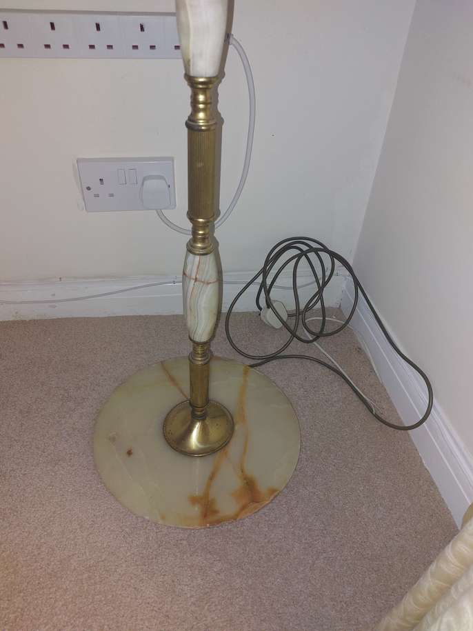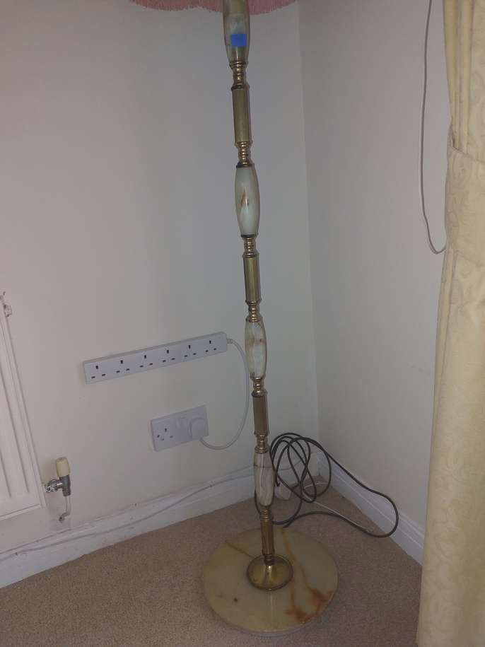 Period Oxyx and Brass Standard Lamp + Shade170cm high single shaft stand of brass and onyx on circular onyx base + Shade. Cire: 1970-80. Very good condition fully functional. 170cm height with approx. 20 - 23 cm base. Last chance for a bargain must be gone by Mid Dec 25. Collection only from West Worthing West Sussex.