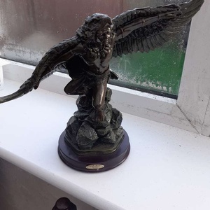 A resin figure in the Greek style of Icarus disguised as a eagle on a plinth