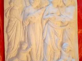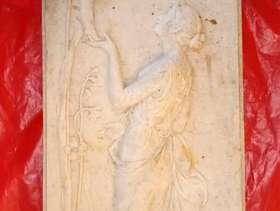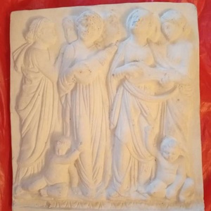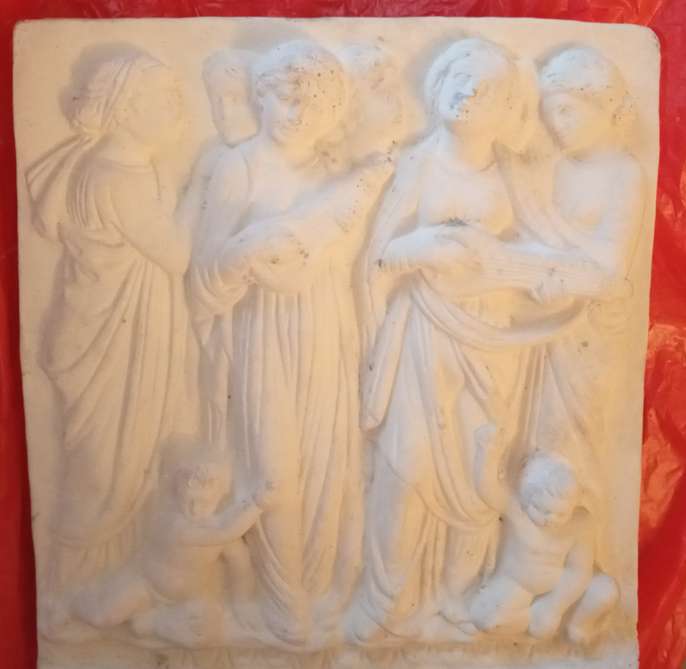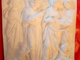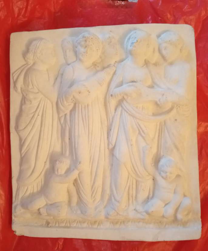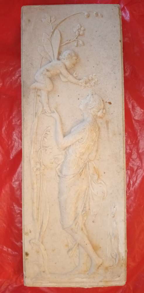 Lovely stone ornamental plaques with hangers. larger one is 11" long x 10" wide and depth 1" long one is 13" long x 5" wide and depth 3/4" can see as the pair for £10 or £5 each
