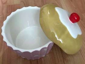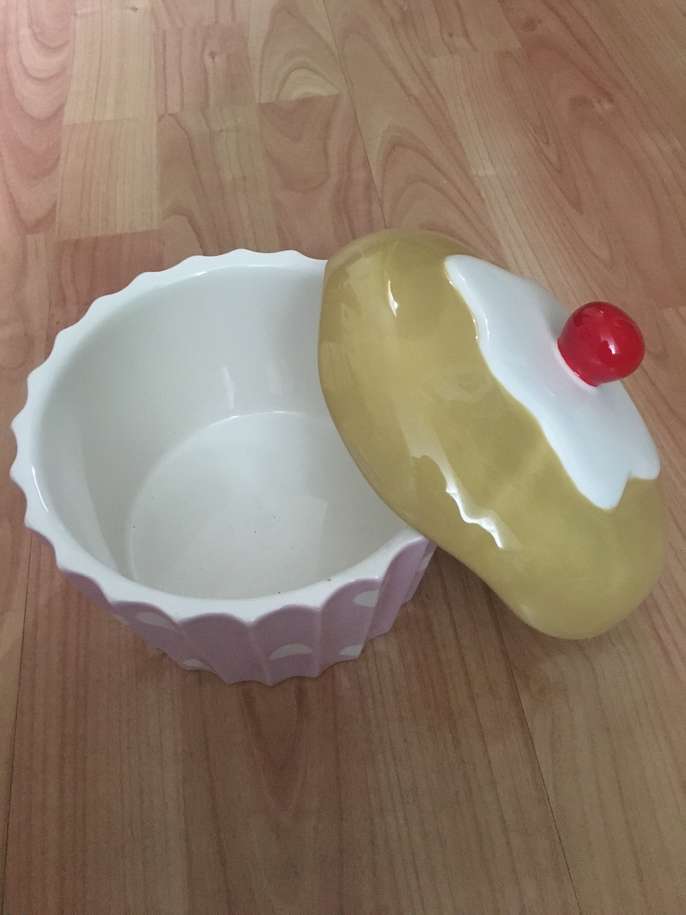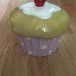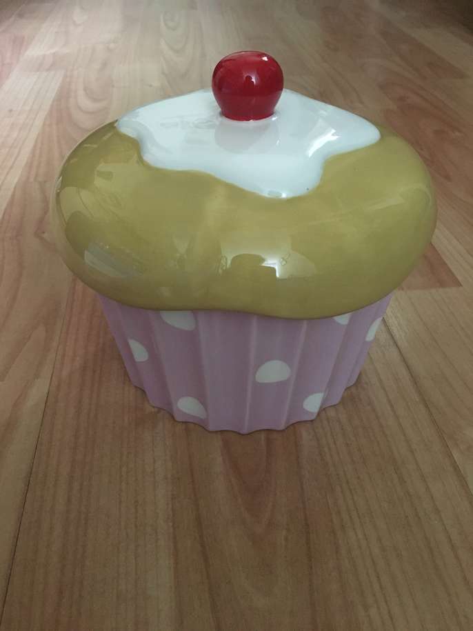Cupcake shaped china storage jar, removable lid. Perfect condition. Cash on collection.