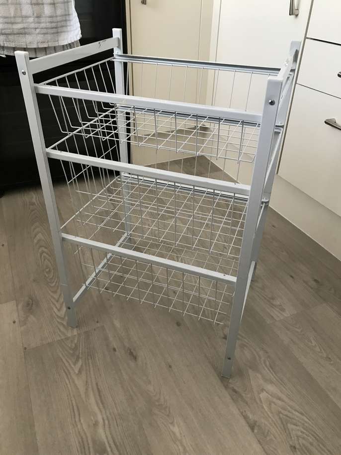 Storage with 3 baskets shelves This item is in Cotton End GB All the details Good condition and only small mark on top. H- 66 1/2 cms D-43 cms W-36cms Price £5.00 Category Home & Garden Request This Item Ask a Question Post Message