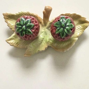 Strawberry Salt and Pepper Pots in Leaf Tray Unused
