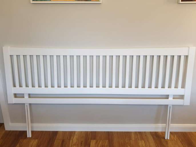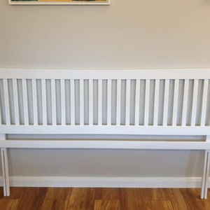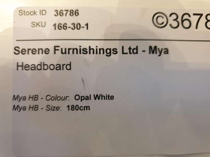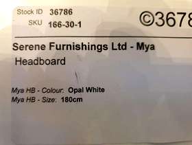 A lovely hardly used white superking sized headboard. Measures 190cm. The model is "Mya" by Serene Furnishings and was purchased from Francis of Malvern. Cost £145 new.