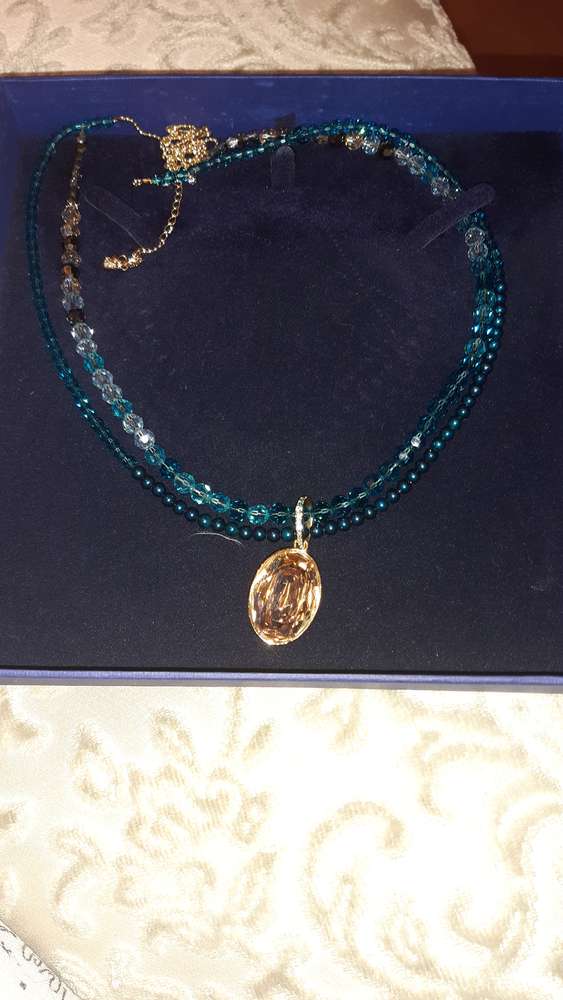Swarovski necklace This item is in Chase Cross GB All the details Blue and coral mid length crystal necklace. Very sparkly. Never worn Price 80.00 Time Remaining This listing has finished Category Jewellery & Watches Post Message