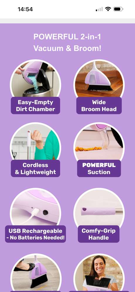 USB charged handy sweeper and vacuum for quick cleans. Good for people with back issues.