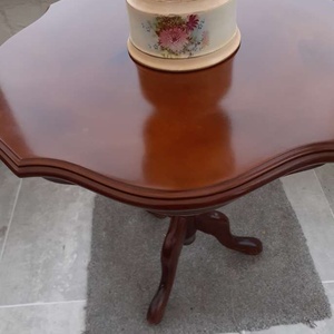 A very nice tripod side table in very good condition.Comes from a smoke/petfree home. Measures 24 inches by 20 inches