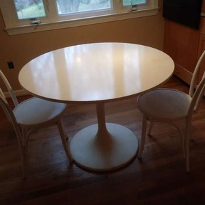 Table from IKEA, 42 inches dia.; 2 wood chairs