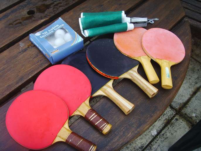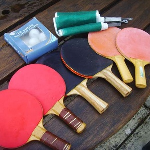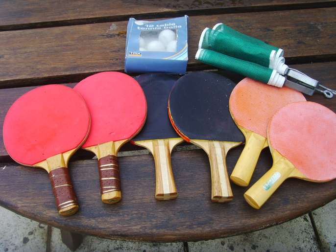 SIX table tennis bats...used 6 balls unused and a net unused unsure how much to ask so open to offers