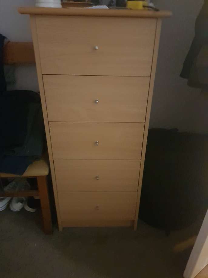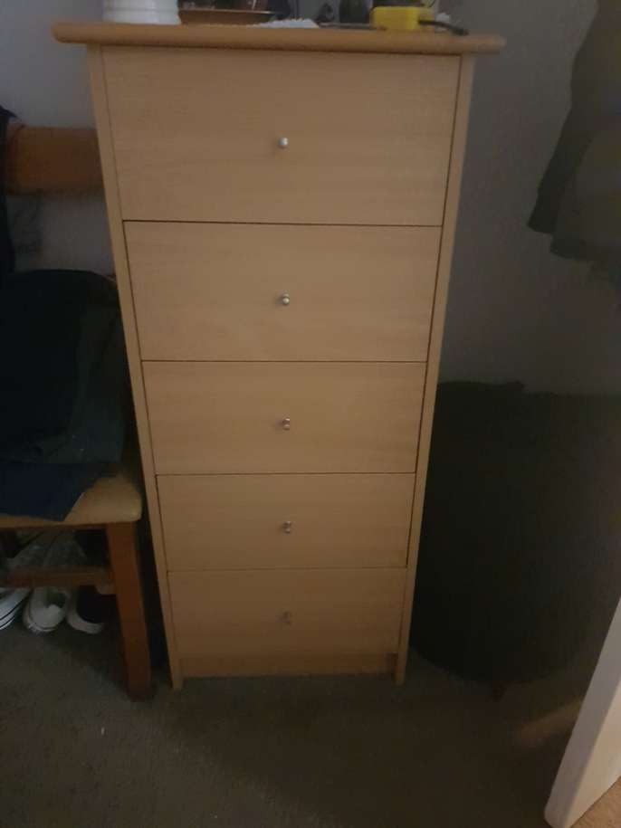 Tall chest drawers in good condition H 42 " W 17 " D 15 " Pick up only from Chislehurst area cash on pick up from a smoke free environment