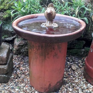 A dark glazed terracotta saucer mounted on a vintage terracotta land drain which is marked Wm Thomas & Co of Wellington a piece of local history. Could be cleaned but I think it look better with the aged look. 32cm across 37 high. Bird not included.