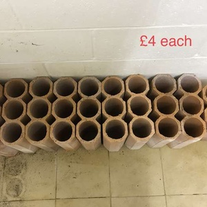 Three bottled terracotta wine racks. £4 each 9 in total plus one for two bottles. Collection from Banstead SM7.