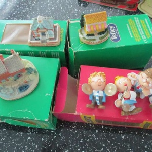 A selection of tetley tea folk and buildings miniature models